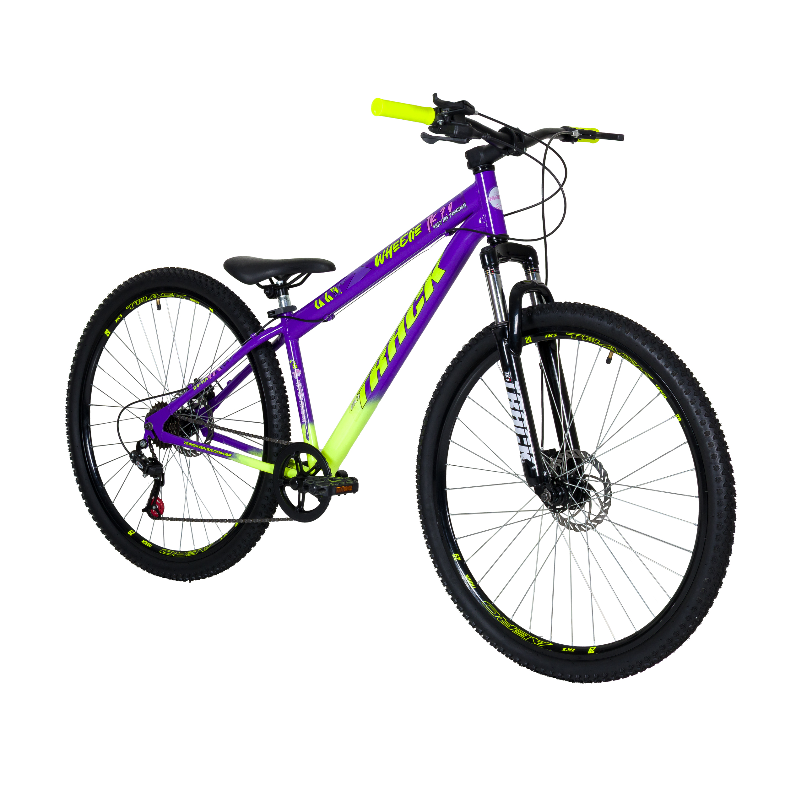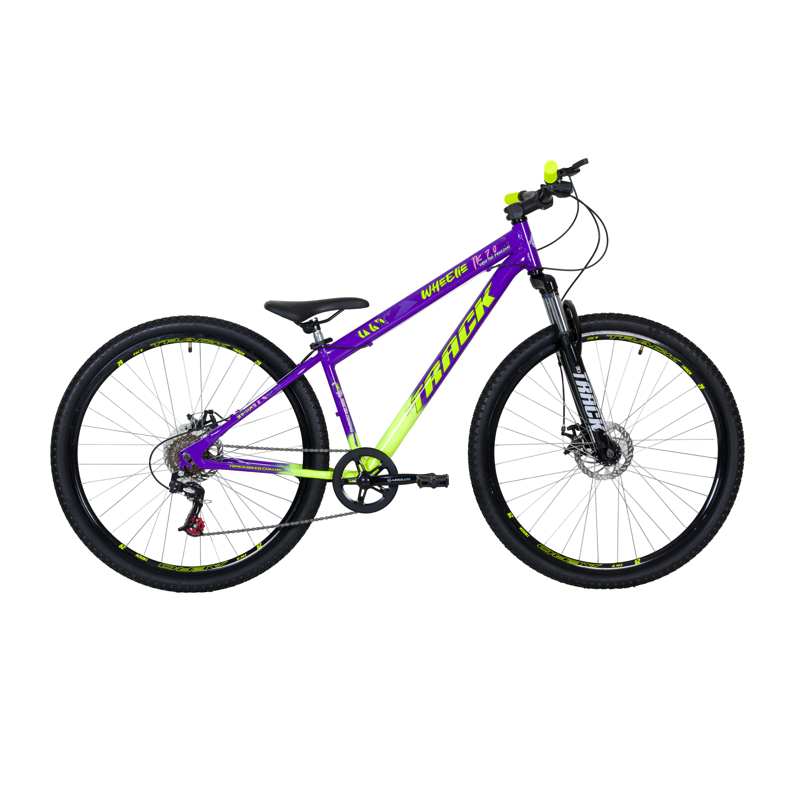 CATEGORIA: WHEELIE / GRAU PESO BRUTO: 20,5 KG NCM: 87120010 GARANTIA: 90 DIAS CAPACIDADE: 110 KG ORIGEM: NACIONAL PÚBLICO SUGERIDO: A PARTIR 12 ANOS OU 160 A 180 CM ACIONADOR DE CAMBIO: LADO DIREITO EZ-FIRE ACIONADOR DE FREIOS: PLÁSTICO BLOCAGEM: APERTO DO SELIM CÂMBIO DIANTEIRO: NÃO SE APLICA CÂMBIO TRASEIRO: TRACK INDEX CANOTE DO SELIM: AÇO 25,4X 350 MM CATRACA TRASEIRA: 7 VELOCIDADES CUBOS: AÇO CORRENTE: 1/X2 X3/32 INDEX MARCHAS: 7 MOVIMENTO CENTRAL: 34,7 MM 3 PARTES TIPO DE ARO: AERO FOLHA DUPLA ARO: 29 RODAS: ALUMÍNIO PNEUS: 29 HÍBRIDOS RODAS DE APOIO: NÃO SE APLICA FREIOS: A DISCO MECÂNICO 160 MM QUADRO: AÇO GUIDÃO: AÇO CONIFICADO 31,8 X 660 MM GENÊRO: UNISSEX MODALIDADE: WHEELIE/ GRAU SELIM: P.U COM FORQUETA MANOPLAS: PLÁSTICA PEDAIS: NYLON COM REFLETORES PEDIVELA: AÇO REVESTIDA 170 MM X 38 D SUPORTE DE GUIDÃO: AHEAD SET ALUMÍNIO SUSPENSÃO: DIANTEIRA TAMANHO DO QUADRO: 15’’ USO: WHEELIE/ GRAU / PASSEIO